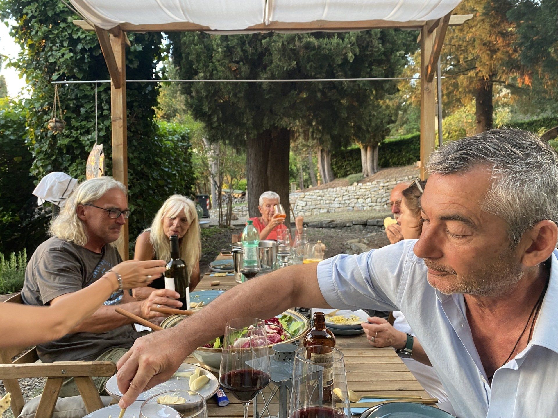 Yvonnes Geburtstag. Wir haben gestern richtig viel Besuch bekommen. Martina und Stefan machen einen Zwischenstopp auf dem Weg nach Wolkenstein, Andrea und Michi kommen aus Traunstein und Yvonnes Eltern nach anstrengender Fahrt aus München. Heute kommen völlig überraschend Fabio-Massimo und Lavinia zu Besuch und bleibt zum Abendessen. Die zweite riesen Überraschung, Sina und Alex haben eine Vertretung für den Laden gefunden und landen gerade noch rechtzeitig zum Abendessen. Ein wunderschöner Tag.