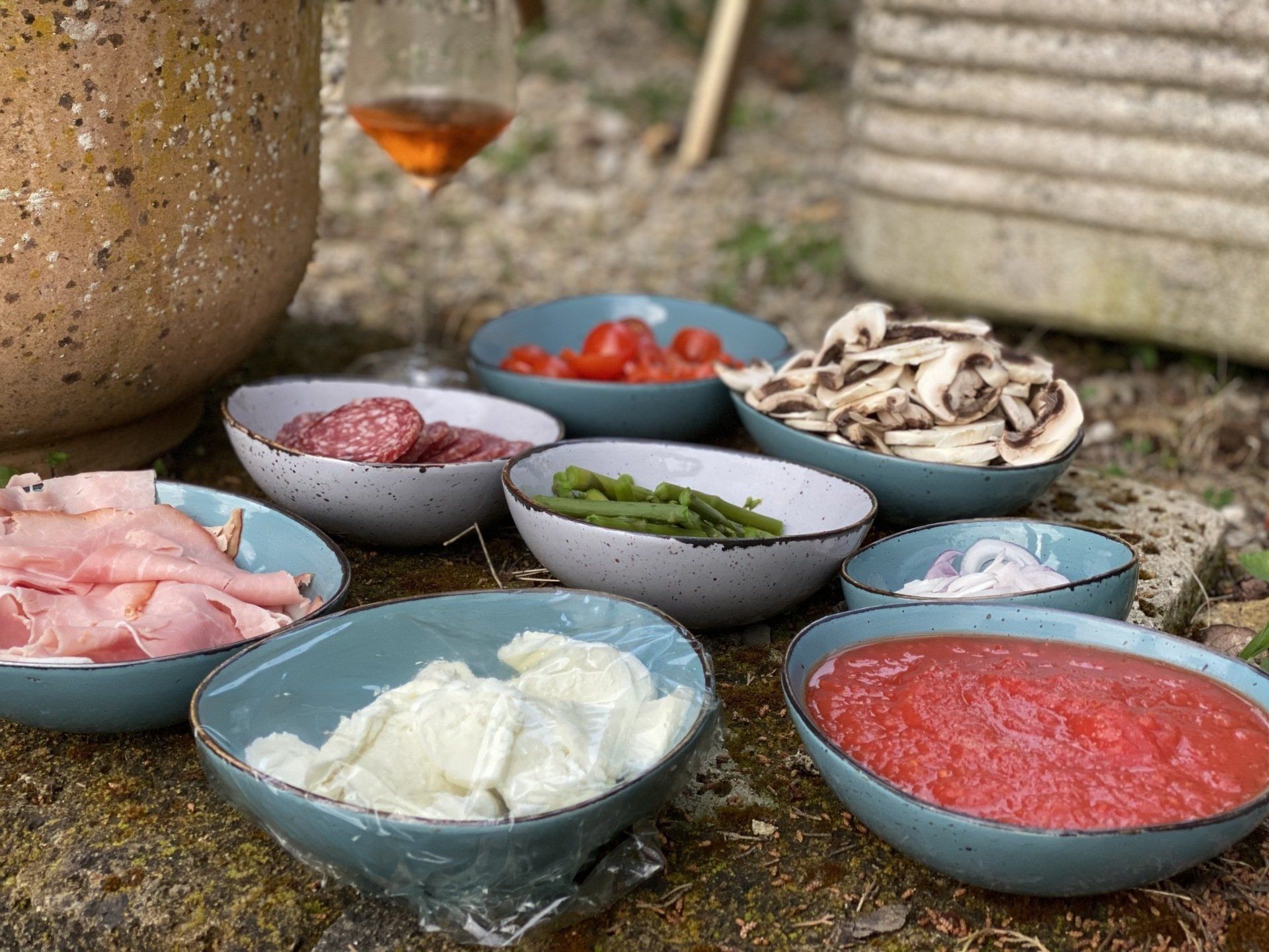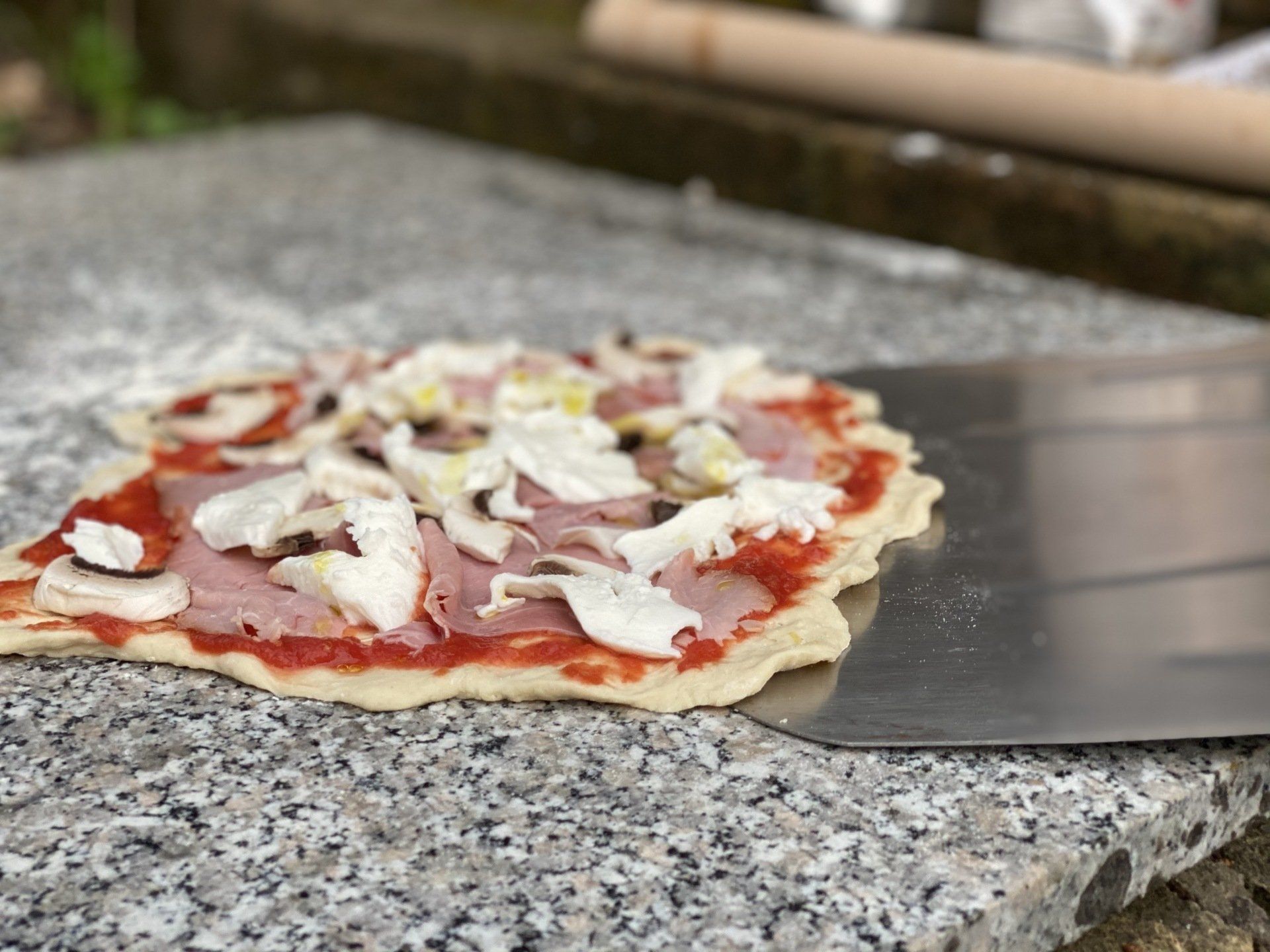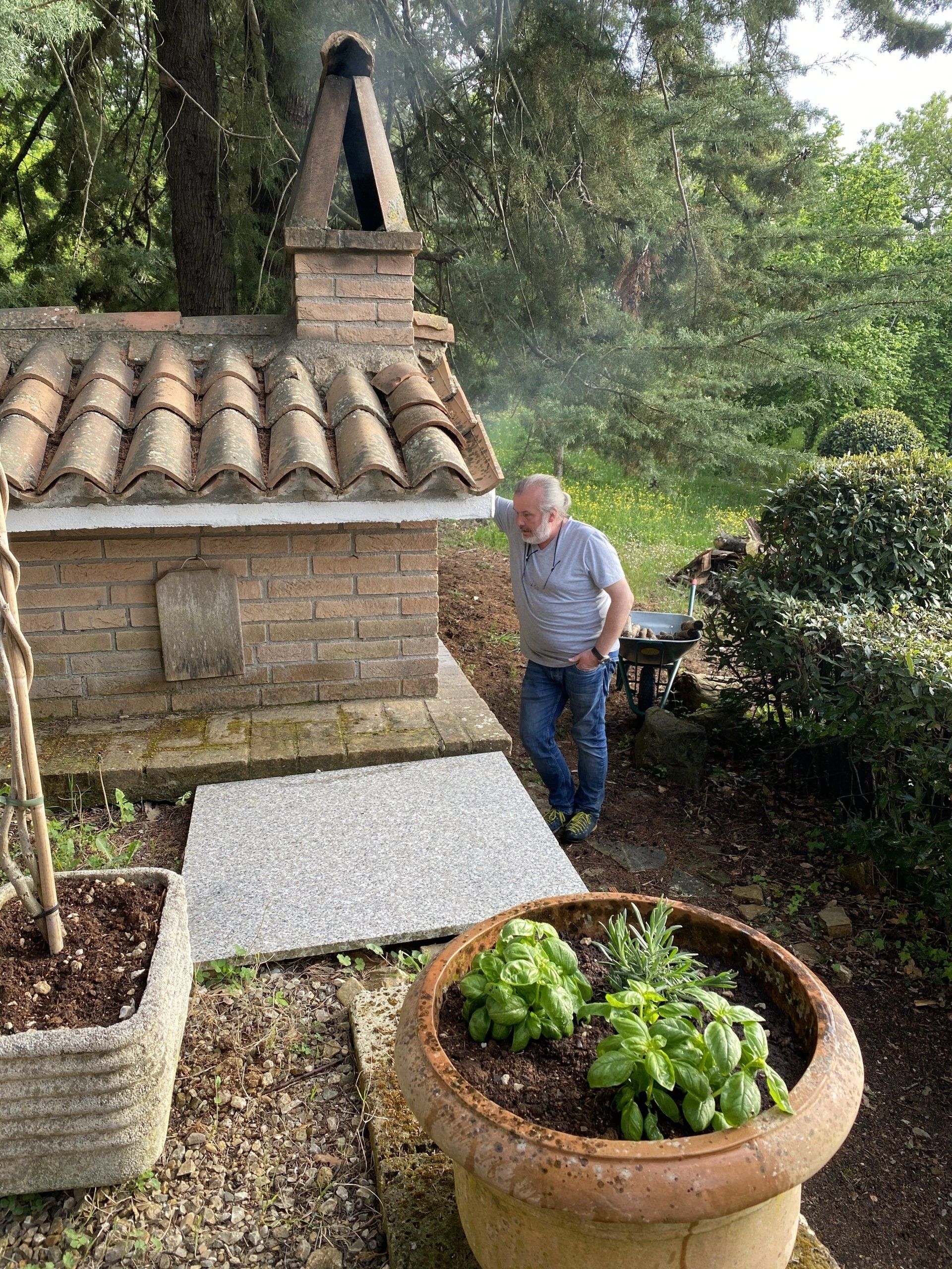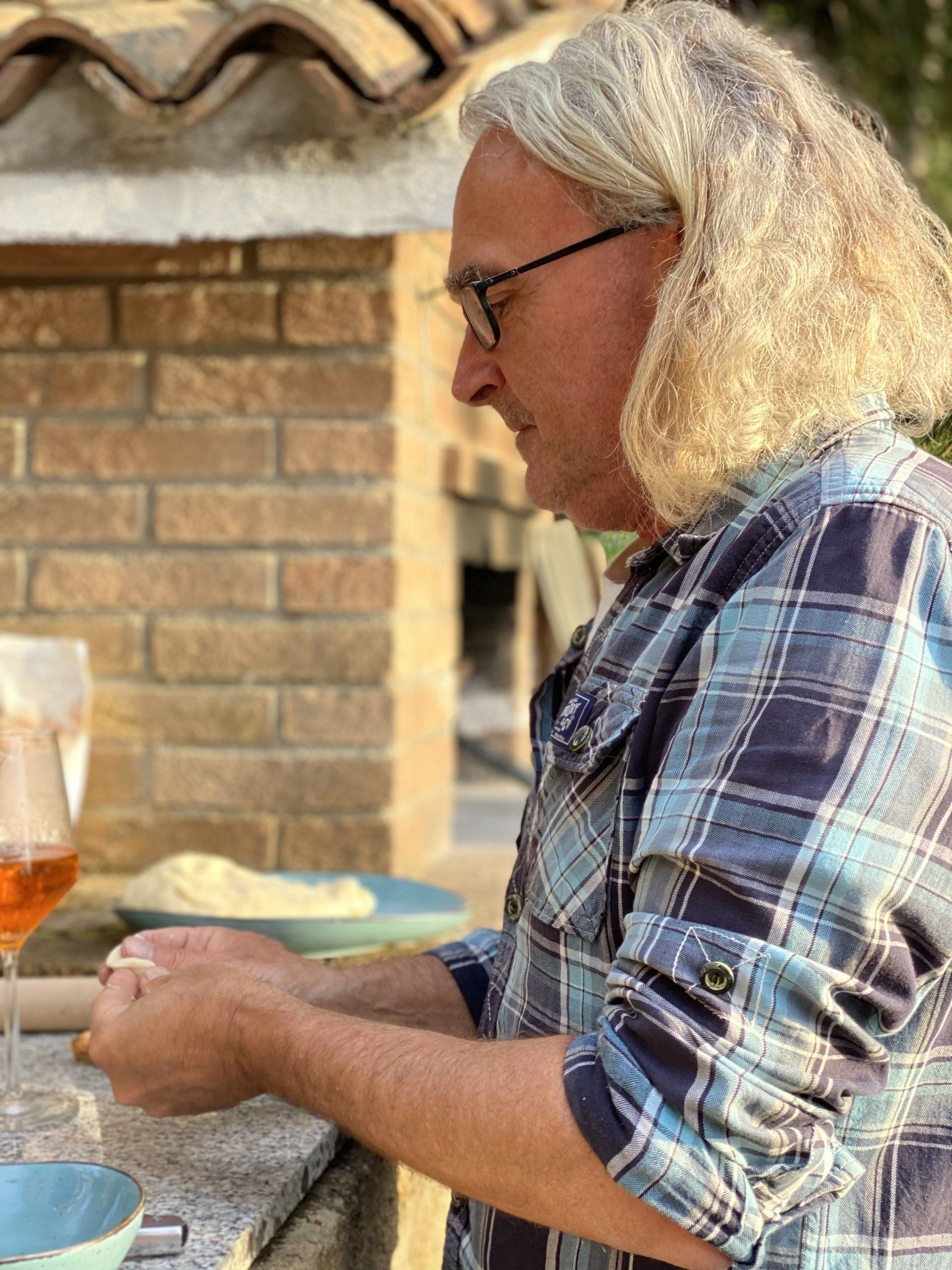 Natürlich muss man in Italien nicht unbedingt selber Pizza machen. Wir haben aber einen Brotbackofen und beschließen, ihn heute zu testen. Der erste Teig misslingt! Nachdem wir dann aber Backpulver von Hefe unterscheiden können (auf beiden Tüten steht Lievito) entsteht doch noch ein toller Hefeteig. Wir belegen mit allem, was die Küche hergibt und dann macht Pizza backen richtig Spaß. Das Ergebniss war geschmacklich sensationell. An der Optik arbeiten wir noch.